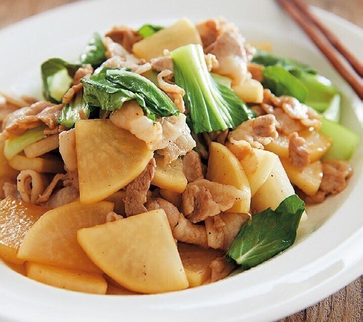 『サンキュ!』2021年2月号の「大根白菜がっつりおかず」より豚バラ大根めんつゆ炒めをご紹介します。