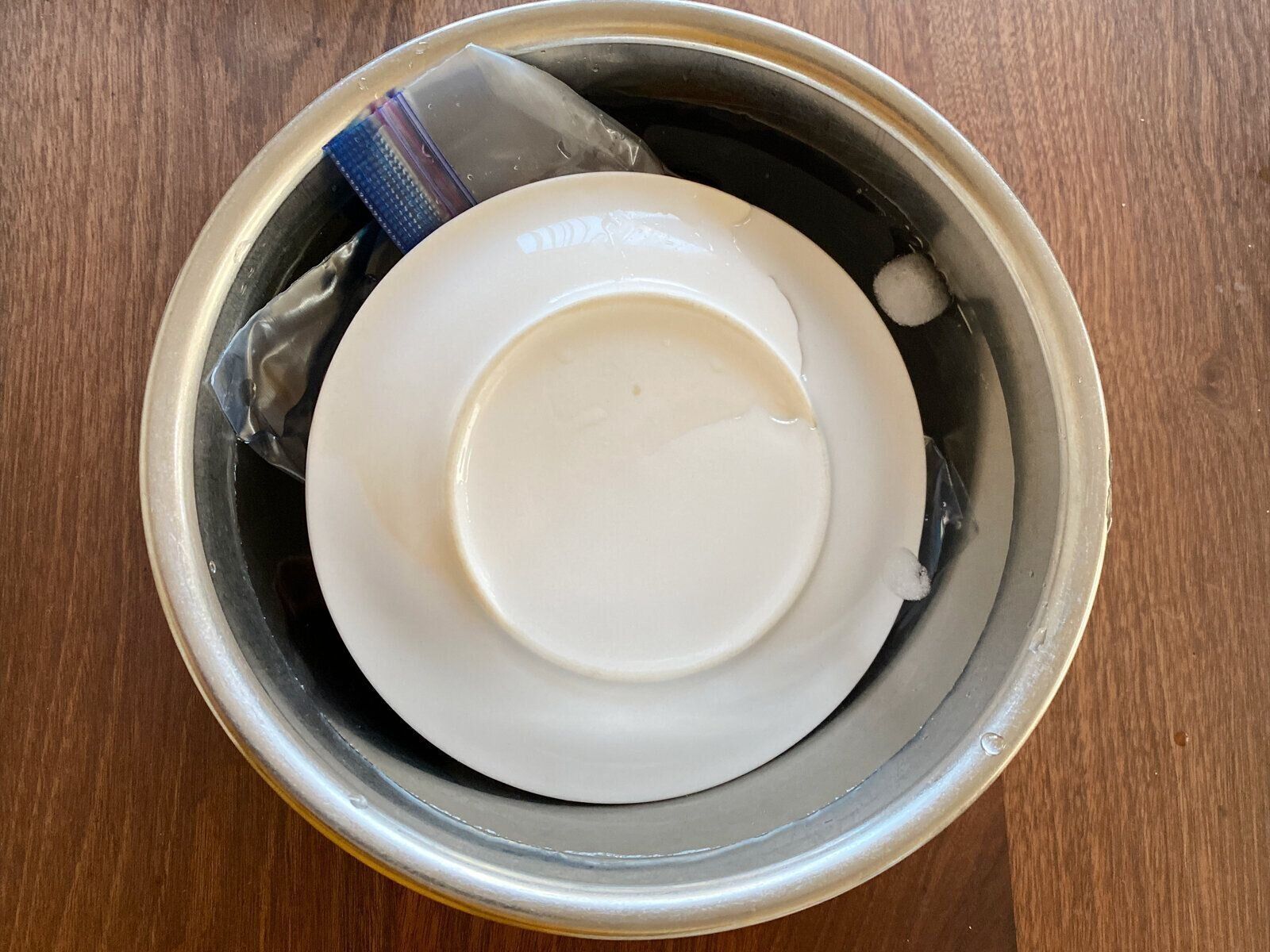 氷水につけていたらむしろ時間がかかって、なかなか溶けないように思うかもしれませんが、実は、分量や気温等にもよりますが、常温で解凍するよりも早いことも。その理由は、空気よりも水の方が熱伝導率が高く、より素早くその温度を食材に伝えられるためです。