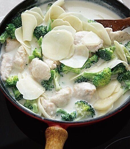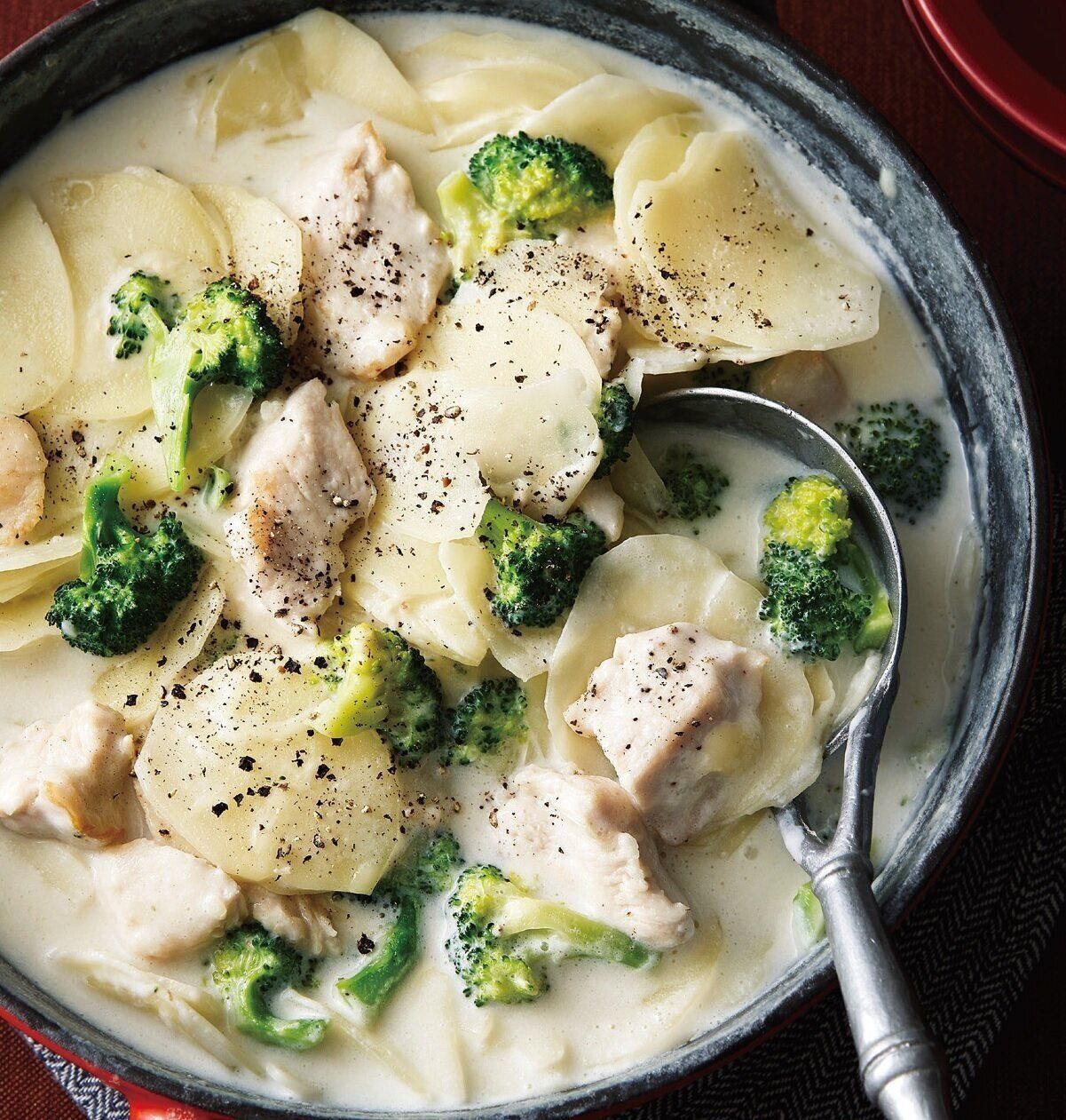 『サンキュ!』2021年2月号の「別冊:寒い日のスタミナおかず」よりチキンとポテトのチーズクリーム煮をご紹介します。