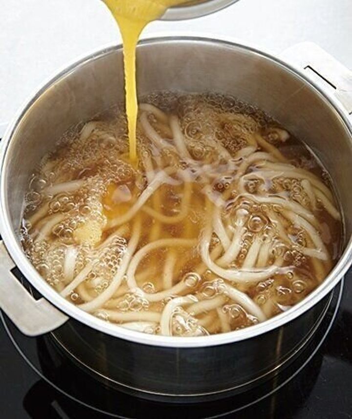 冷凍うどんは袋の表示どおりに電子レンジで加熱するか、ゆでて温める。