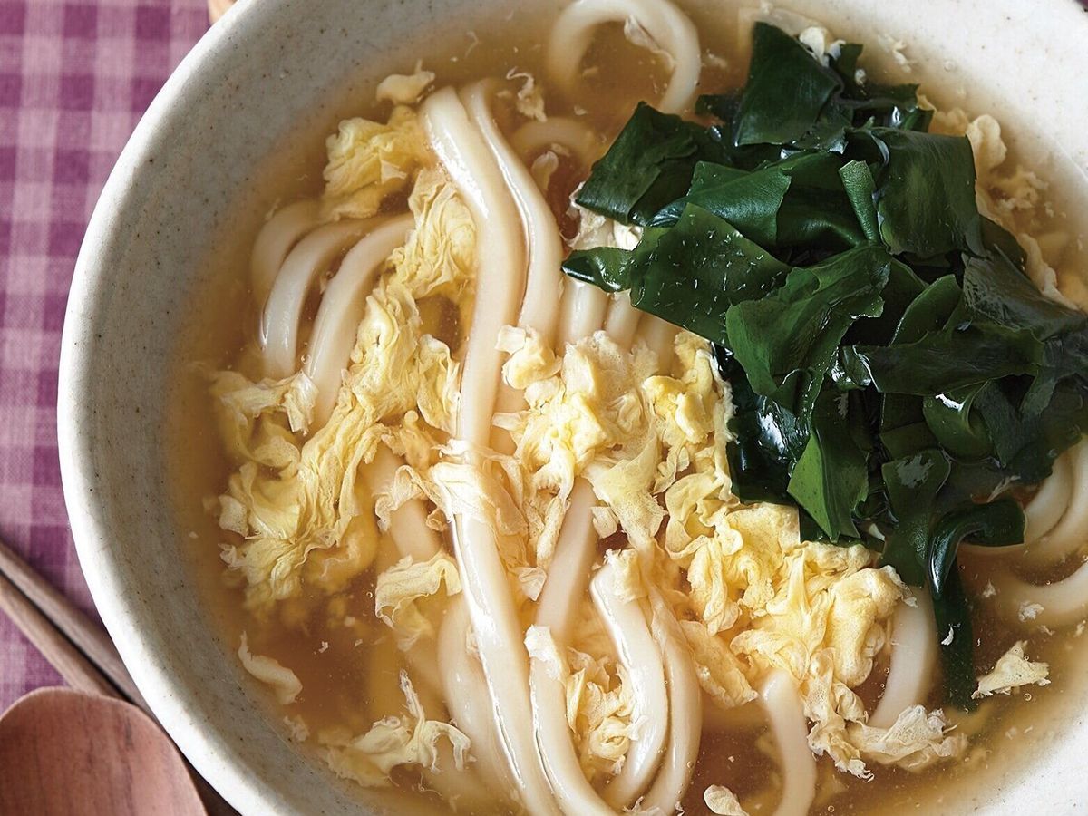 鍋に[A]を入れて中火にかけ、煮立ったらうどんを入れ、再度煮立ったら水溶き片栗粉を加え、軽いとろみをつける。卵を溶きほぐして回し入れ、ふわっと浮いたらひと混ぜする。器に盛って、わかめをのせる。