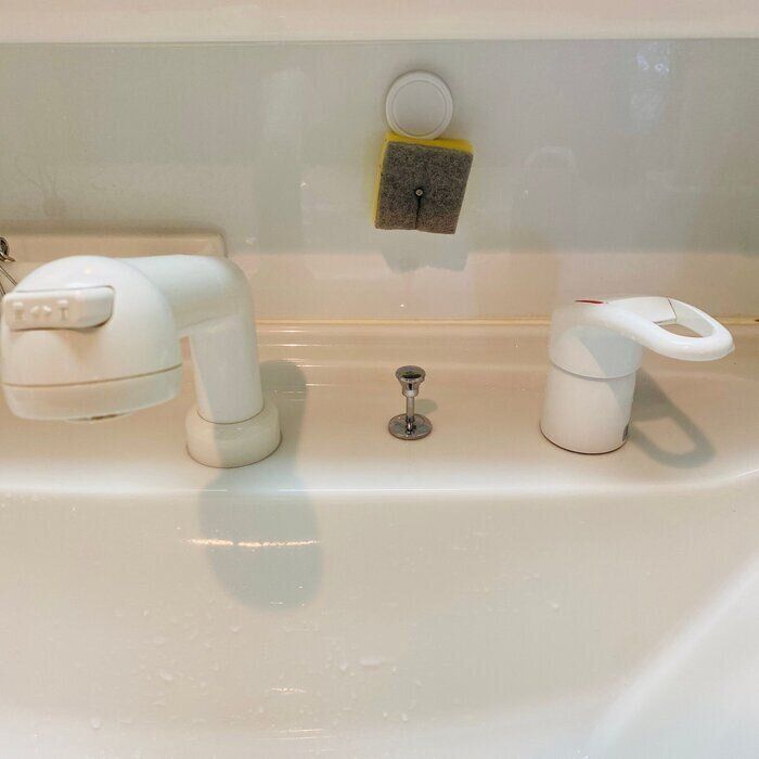 掃除道具を取り出すのに手間がかかると、掃除をするのが面倒になってしまうもの。ちはらさゆりさんは、洗面台の壁に取りつけたマグネットフックに掃除用スポンジを差しこんでおき、こまめに掃除できる仕組みをつくっているそうです。いちいち水きりする必要がなく、出し入れもしやすいので便利なのだとか。