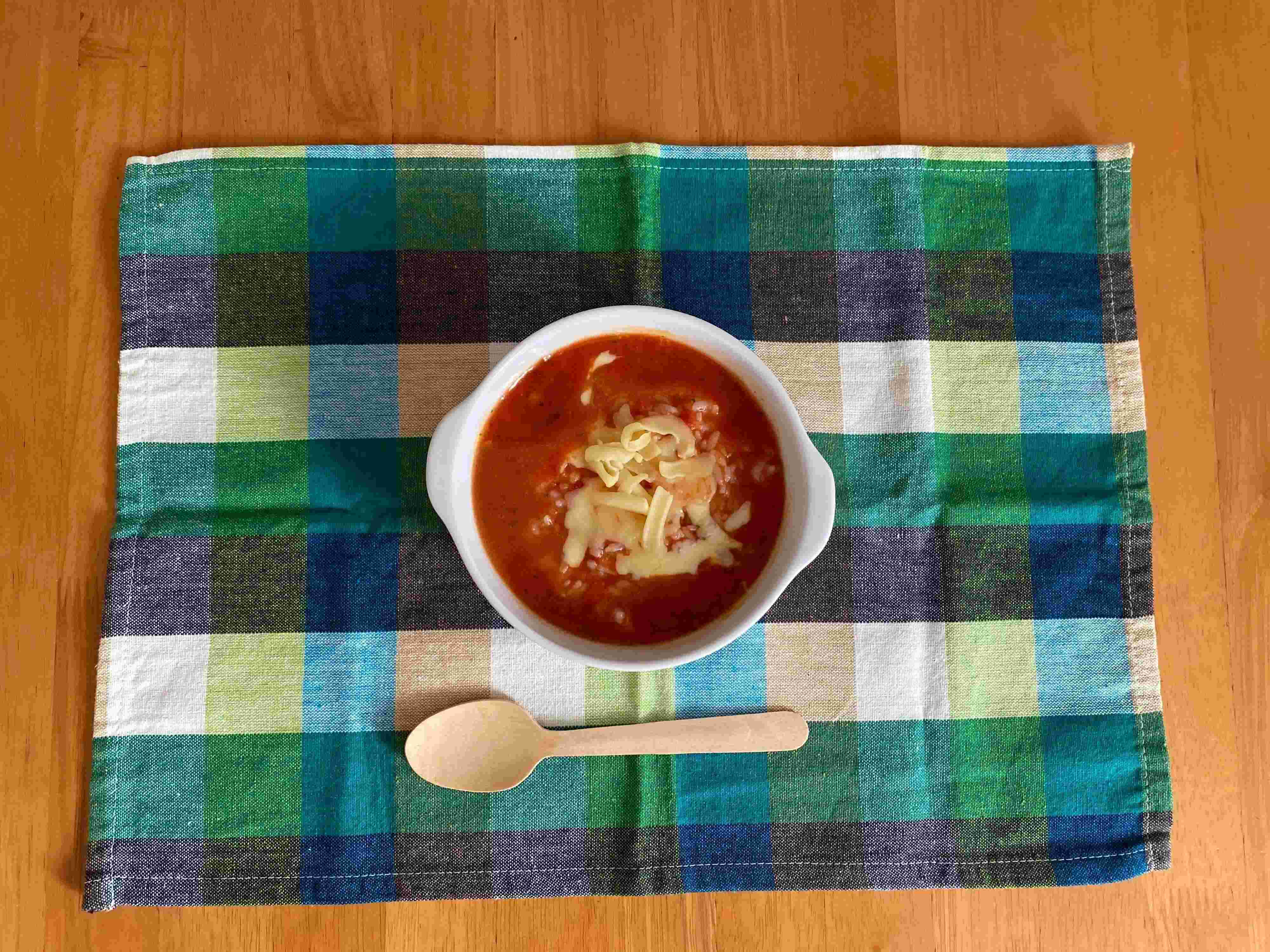 前日におかずを準備できないときの朝食は、具材とチーズをのっけたパンをオーブントースターで焼いてピザトーストにしたり、市販の粉末スープとご飯をレンジで温めてリゾット風にしたりすることも。火を使わないので朝からコンロが汚れず、洗い物も最小限ですみます。