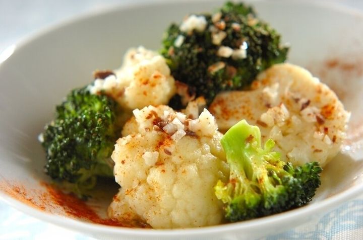 カリフラワーとブロッコリーに和えるマリネ液に、アンチョビとニンニクを入れることで、ほどよい塩気が食欲をそそります。簡単につくれるのに本格的な味わいで、前菜にもぴったりです。