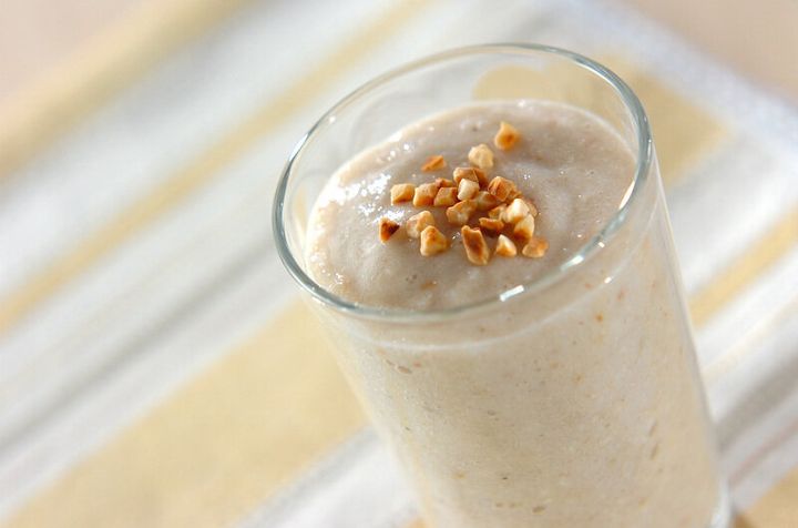 使う食材はカリフラワーとバナナにアーモド。アーモンドの香りやバナナのやさしい甘さが特徴の白野菜ジュースです。砕いたアーモンドを添えていただきましょう。