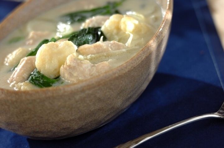 鶏ささ身とホウレン草のクリームスープ