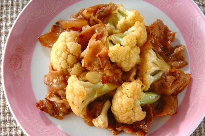 豚肉とカリフラワーの炒めものレシピです。こってりしたオイスターソースの味つけで、ご飯が進みます。下準備さえ終わらせてしまえば、あとはサッと炒めるだけで完成ですよ。