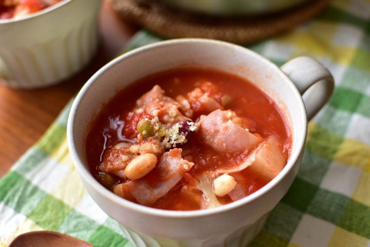 野菜の旨みが溶け込んだミネストローネのレシピです。トマトの酸味も感じられるほどのシンプルな味付けがポイント!カリフラワーのコリコリとした食感がしっかり味わえる一品です。