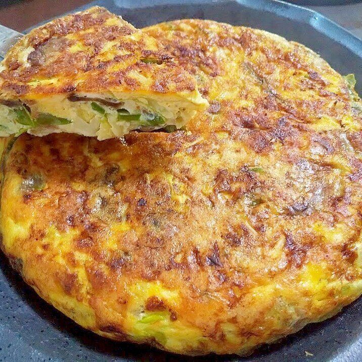 卵とたっぷりの野菜を同時に食べられるスパニッシュオムレツのレシピ。アンチョビの塩気を活かし、シンプルな味つけです。すべての材料を混ぜ、フライパンにふたをして焼くだけなのでとっても簡単!手軽でボリュームのあるオムレツです。