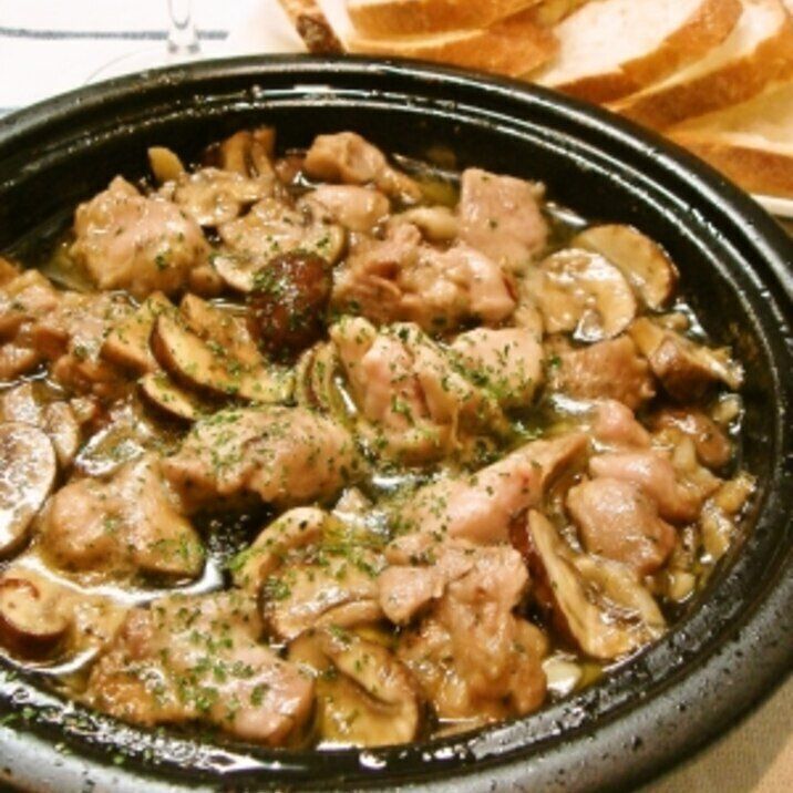 フライパンでつくれる鶏肉の簡単アヒージョ。ニンニクの香りとアンチョビの塩気が食欲をそそり、ワインのおつまみとしてもおすすめです。鶏肉はお好みでエビなどに置き換えても◎。バゲットといっしょにどうぞ!