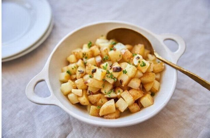 「アンチョビクリームポテト」は、潰したじゃがいもにアンチョビクリームを加えてつくる副菜。アンチョビクリームは、アンチョビと生クリーム、マヨネーズなどを加えてつくります。思わず箸が進む一品に。