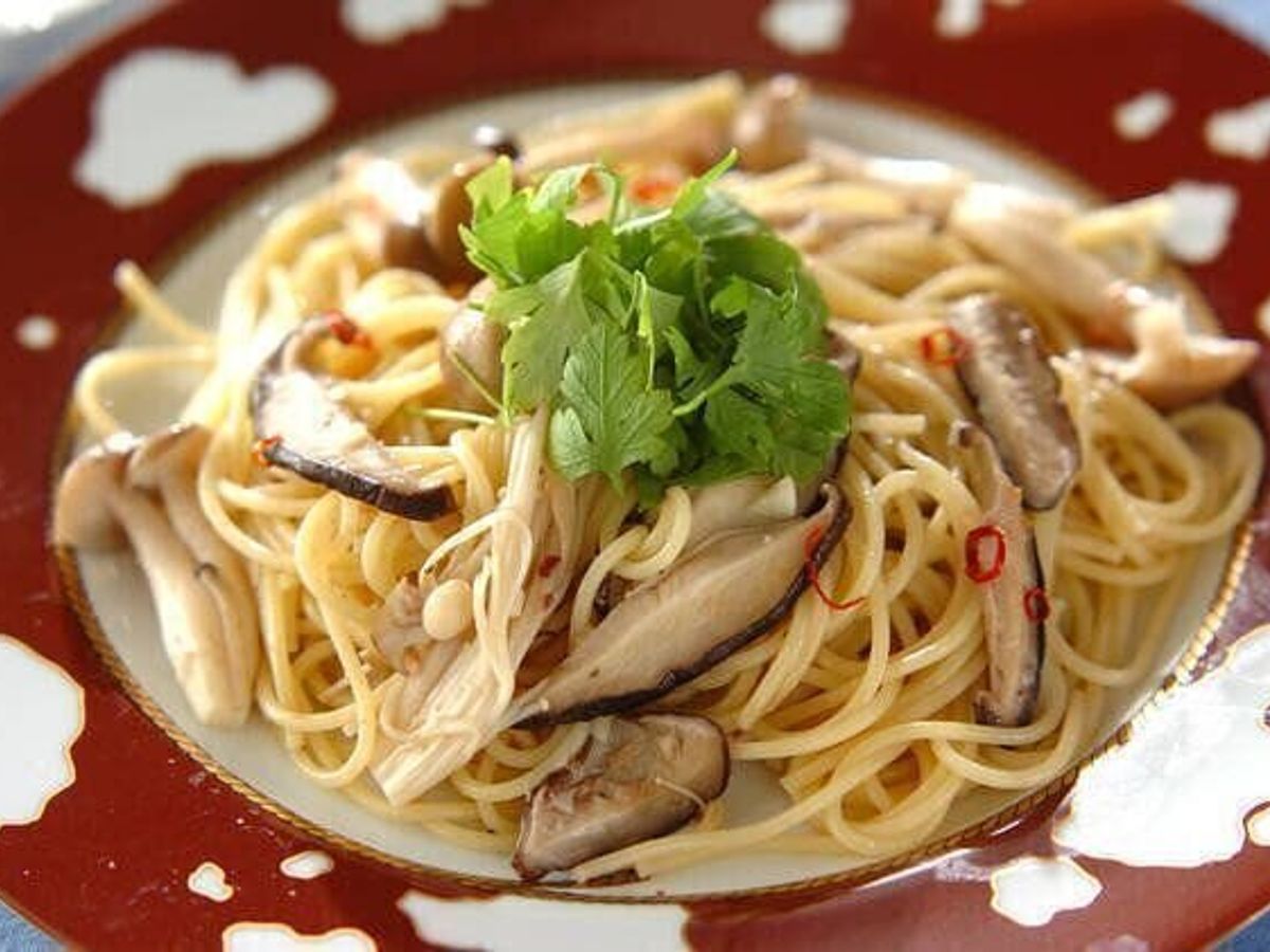 きのこをたっぷり食べられる、キノコとアンチョビのパスタ。ニンニクとオリーブオイルの旨みが、アンチョビの塩気と一緒にパスタによくからんで絶品です。パスタのゆで汁を加えれば、パスタがパサパサにならず最後までおいしくいただけます。