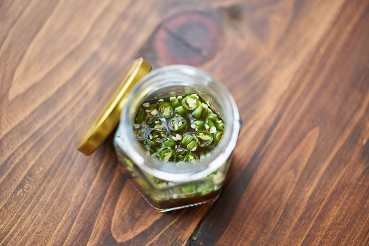 刻んだ青唐辛子をナンプラーに漬けるだけの簡単手づくり調味料。コクのあるうま味と辛味が食欲をそそります。炒めものや揚げものなどさまざまな料理に合わせられて、冷蔵庫で長期保存も可能なので、常備しておくと便利です。