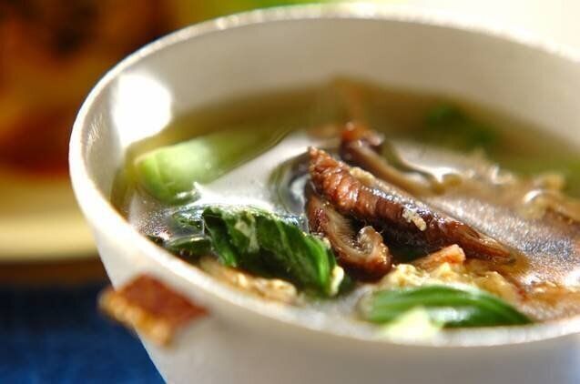 チンゲンサイ・干しシイタケ・干し桜エビの組み合わせが絶妙なスープレシピ。シイタケなどからだしが出るので、味つけはシンプルにナンプラーとごま油だけでOK。鶏ガラスープの素をだし代わりに使っても、おいしくつくれますよ。