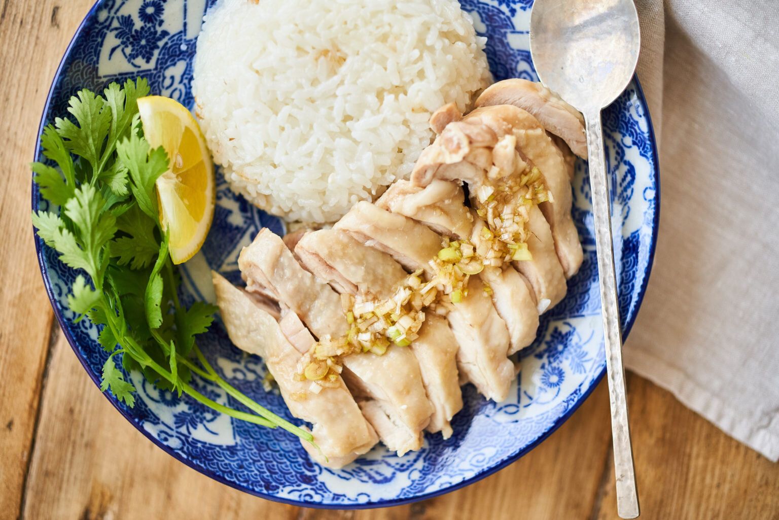 手軽に作りやすいカオマンガイのレシピ。塩麴を加え、お肉をジューシーに仕上げます。ナンプラー入りの「ねぎだれ」で、もりもり食べ進められそうですね!パクチーやレモンも添えていただきます。