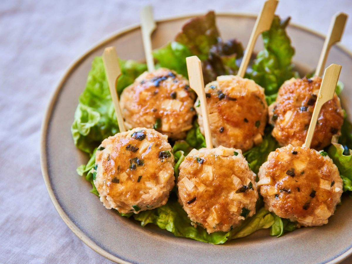 ナンプラーをアクセントできかせた、アレンジつくねレシピ。食感のいいたけのこがたっぷりと入っているので、食べ応えもバツグンです。竹串を刺して盛りつけると、食べやすさもアップしますね。