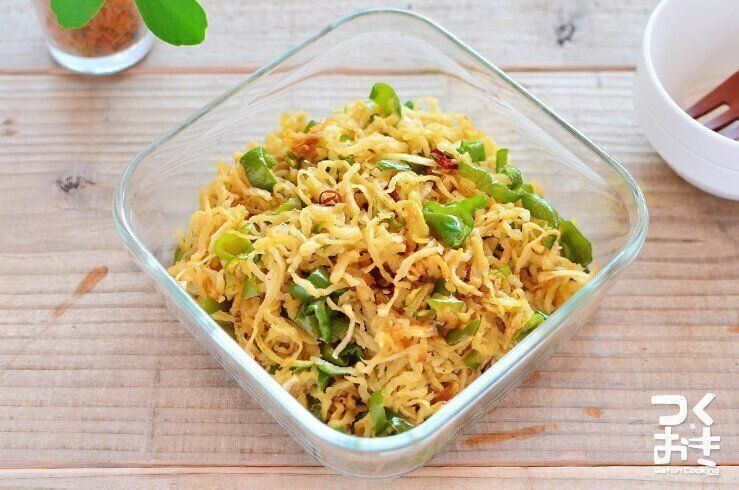 切り干し大根とピーマンを使った、食感のいい炒めものレシピ。淡白な味わいの切り干し大根にナンプラーの風味が加わることで、箸が進む絶品おかずになります。しっかりとした味つけで汁気も少ないので、お弁当のおかずにも最適です。