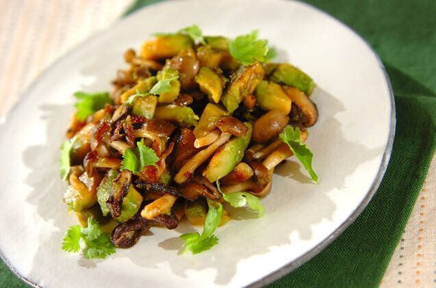 キノコとアボカドのナンプラー炒め