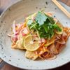 レモン汁や酢を加え、ナンプラーと魚の組み合わせをさっぱり楽しめる一品。全体に色鮮やかで、つくり方もシンプルなのがポイントです。大きめの器に盛り付けて、パーティーを楽しむのもよさそう。