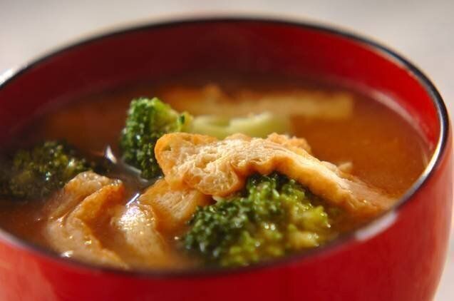 ブロッコリーと油揚げをたっぷり使った、満足感いっぱいのみそ汁レシピ。ブロッコリーの煮くずれを防ぐために、弱火で火を通しましょう。やさしい味わいで、するする飲めますよ。