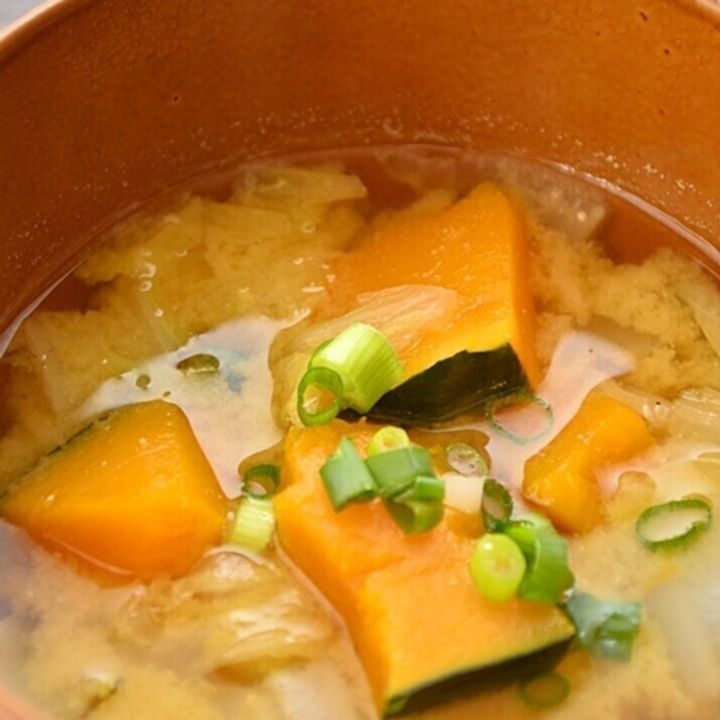 飲むとホッと一息つきたくなる汁物レシピです。みそ汁にかぼちゃを入れれば、甘味が引き立ち子どもでも飲みやすくなります。煮すぎるとくずれやすくなるので、火加減を調整してくださいね。