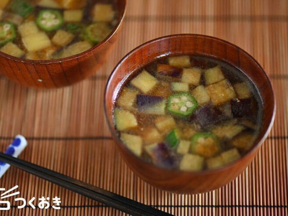 なすとオクラがゴロゴロと入った、具だくさんのみそ汁レシピです。食材を煮る前に、ごま油で炒めておくと食感や風味がグッとよくなります。野菜不足の解消にも大助かりです。