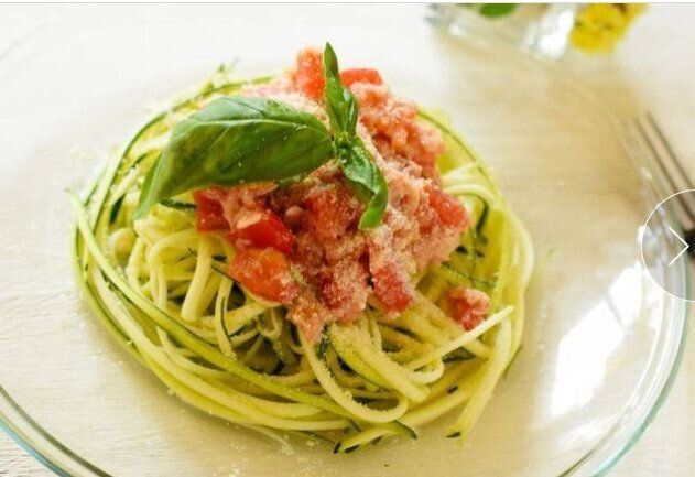 ダイエット中だけどパスタが食べたいという人にオススメなのが、ズッキーニをつかった冷製パスタです。千切りにしたズッキーニはまるでパスタそっくりなので、罪悪感ゼロ。トッピングにバジルを使えば、香りも豊かになります。