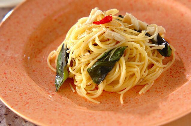 約15分で完成する、エノキとバジルのペペロンチーノ。バジルの風味が加わることで、お店のような本格的な味わいを堪能できそうです。お好みで野菜やお肉など、具材をプラスするのもおすすめです。