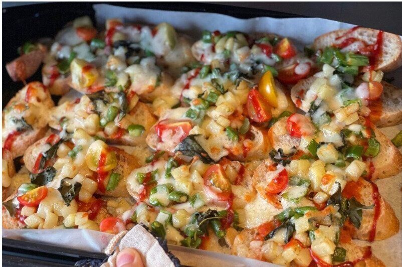 バゲッドを活用することで、ピザ生地を用意する手間なく、かんたんにピザが楽しめます。バジルをトッピングすることで、本格的な香りと風味を楽しめるピザになります。