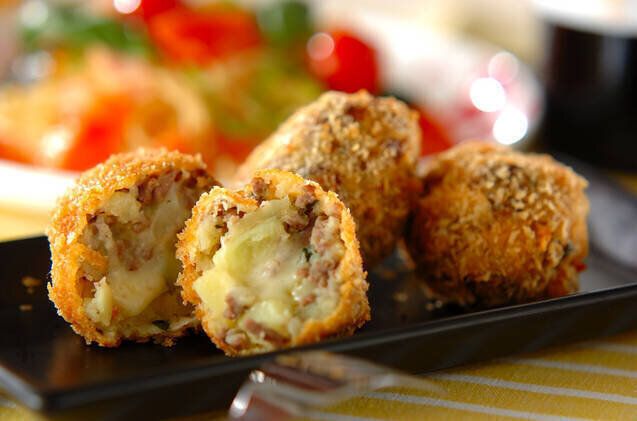 赤ワインと一緒に味わいたい、バジルチーズコロッケ&ワイン。口いっぱいに広がるバジルの香りと、ワインの風味が抜群にマッチしそうです。コロッケにピザ用チーズを加えるため、まろやかなコクも感じられそうですね。