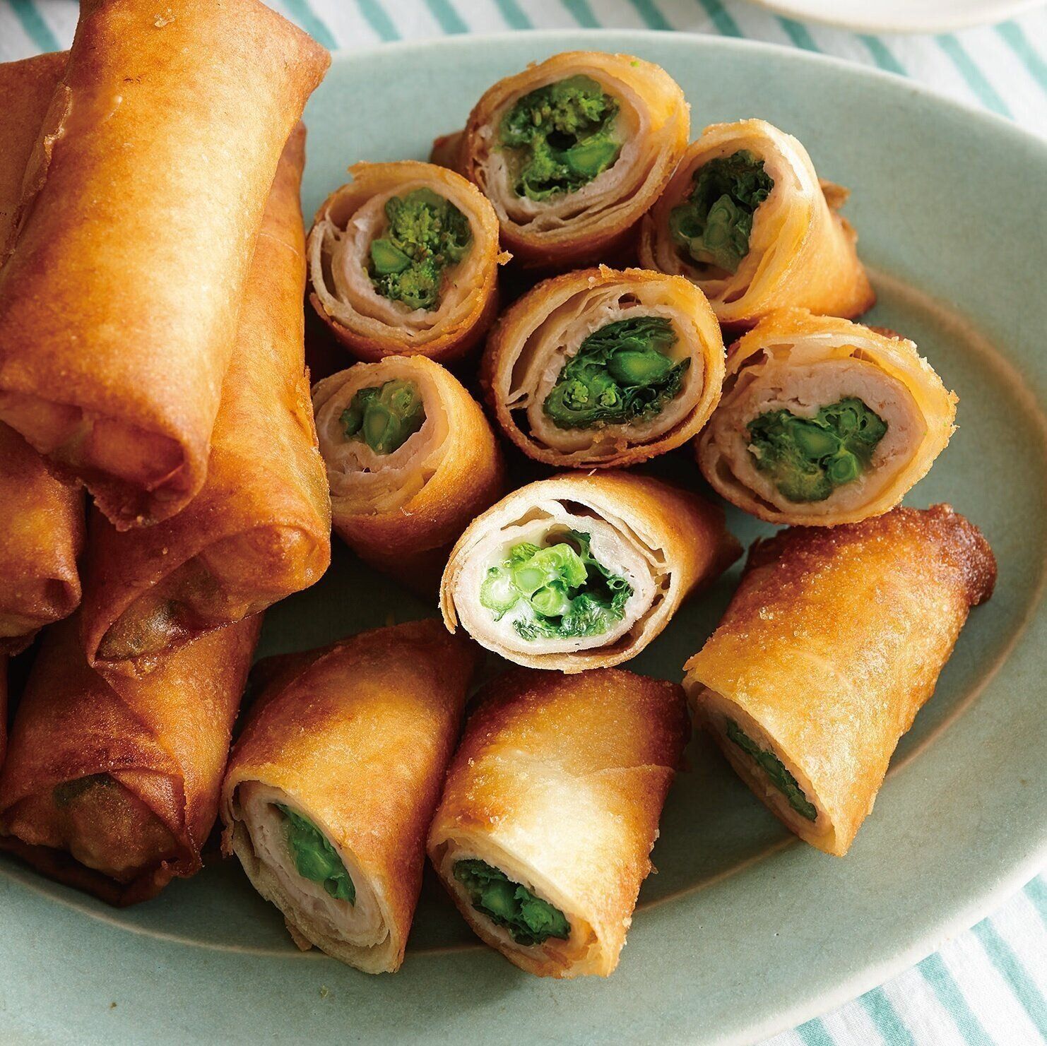 『サンキュ!』2021年4月号の「別冊:春野菜のカンタンおかず」より菜の花と豚肉のチーズ春巻きをご紹介します。