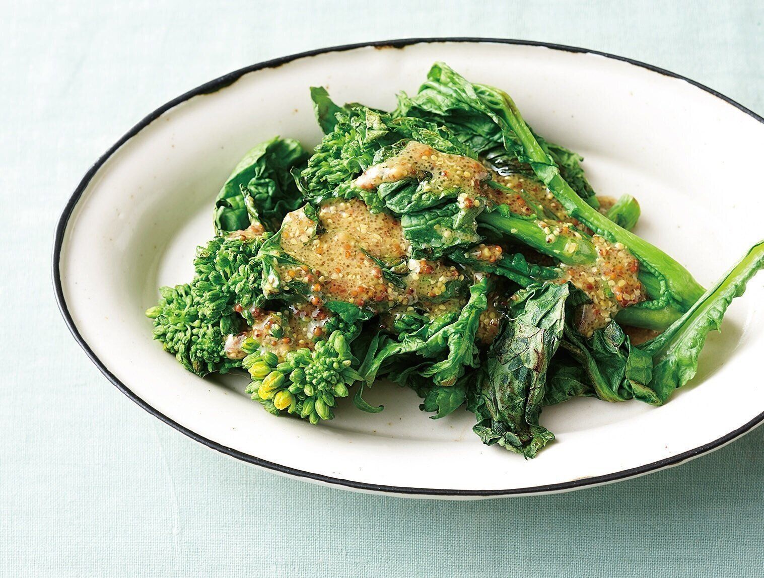 『サンキュ!』2021年5月号の「別冊:フライパンでがっつりおかず」より焼き菜の花のマスタードソースをご紹介します。