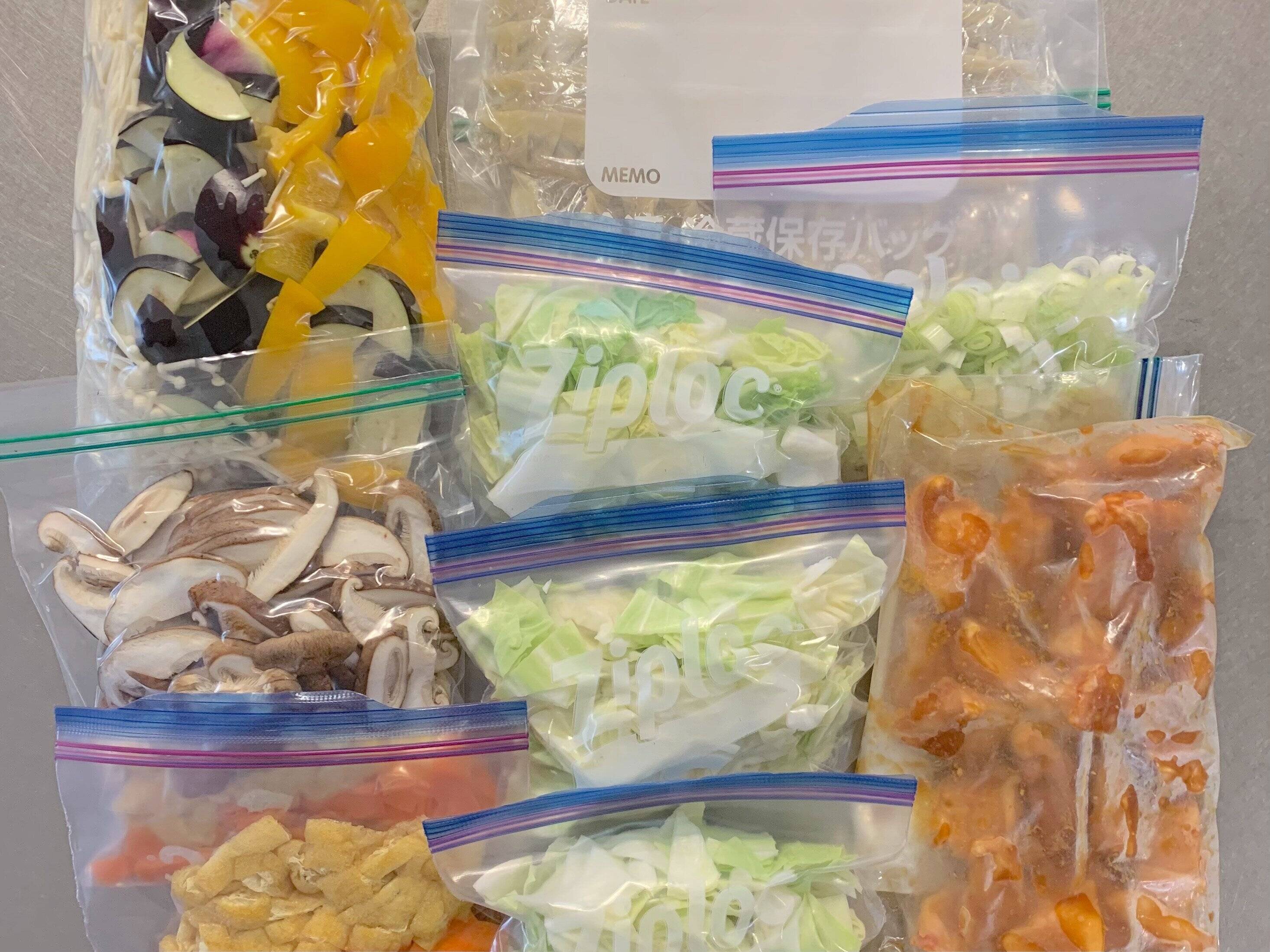 買ってきた材料はすぐにパッケージから出し、必要なら洗ってしまいましょう。そして、献立に合わせて切ったり味つけをしたりしておきます。ジッパーつき保存袋に入れて冷凍しておけば、使うときに解凍するだけ。