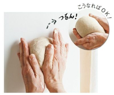 (5)生地を手前に引き戻して、再び押し出すようにこねる。表面がなめらかになるまで、手早く5分ほど繰り返す。