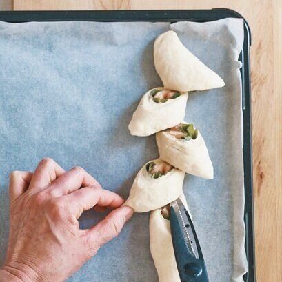 『サンキュ!』2021年6月号の「かわいいパン&スイーツ」より生ハムと青じそのエピをご紹介します。
