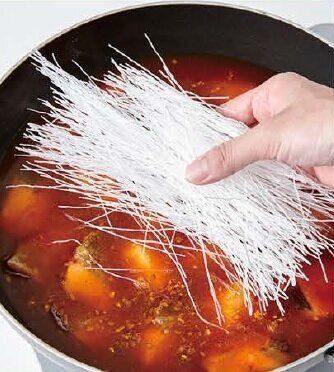 春雨はもどさないで乾燥したまま加えて煮るだけなので手間いらず。
