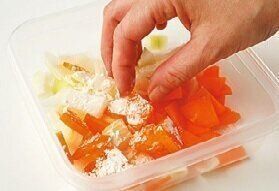 野菜に小麦粉をまぶしておくと、しっかりとろみがつく。