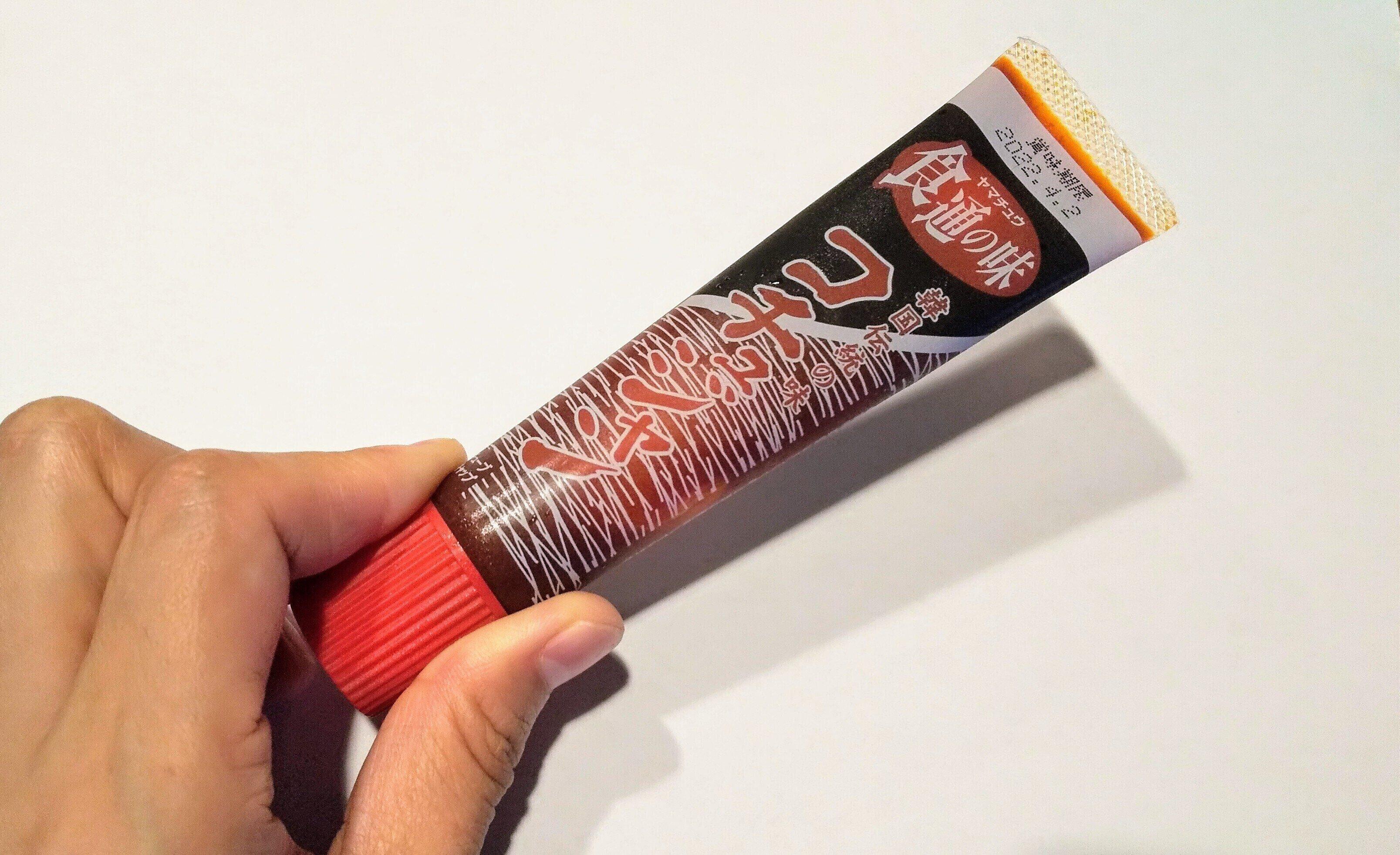 一般的に、コチュジャンは赤くてボテッとしたものをイメージする人が多いと思いますが、前述のとおりメーカーによって原材料が異なるため、味だけでなく見た目にも違いが現れます。今回比較したコチュジャンは、少し粘りがある質感で、少量取り出すと形を維持できるような状態でした。