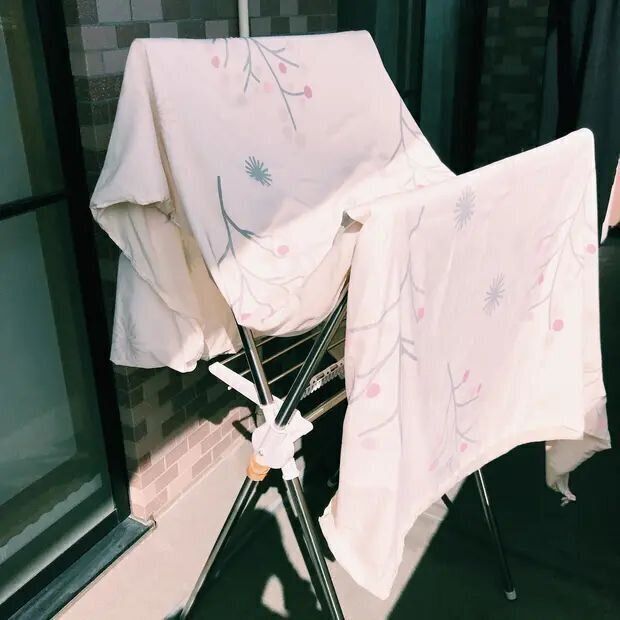 写真のようにM字の形でシーツを干すことで、風通しがよくなり、乾きやすくなります。