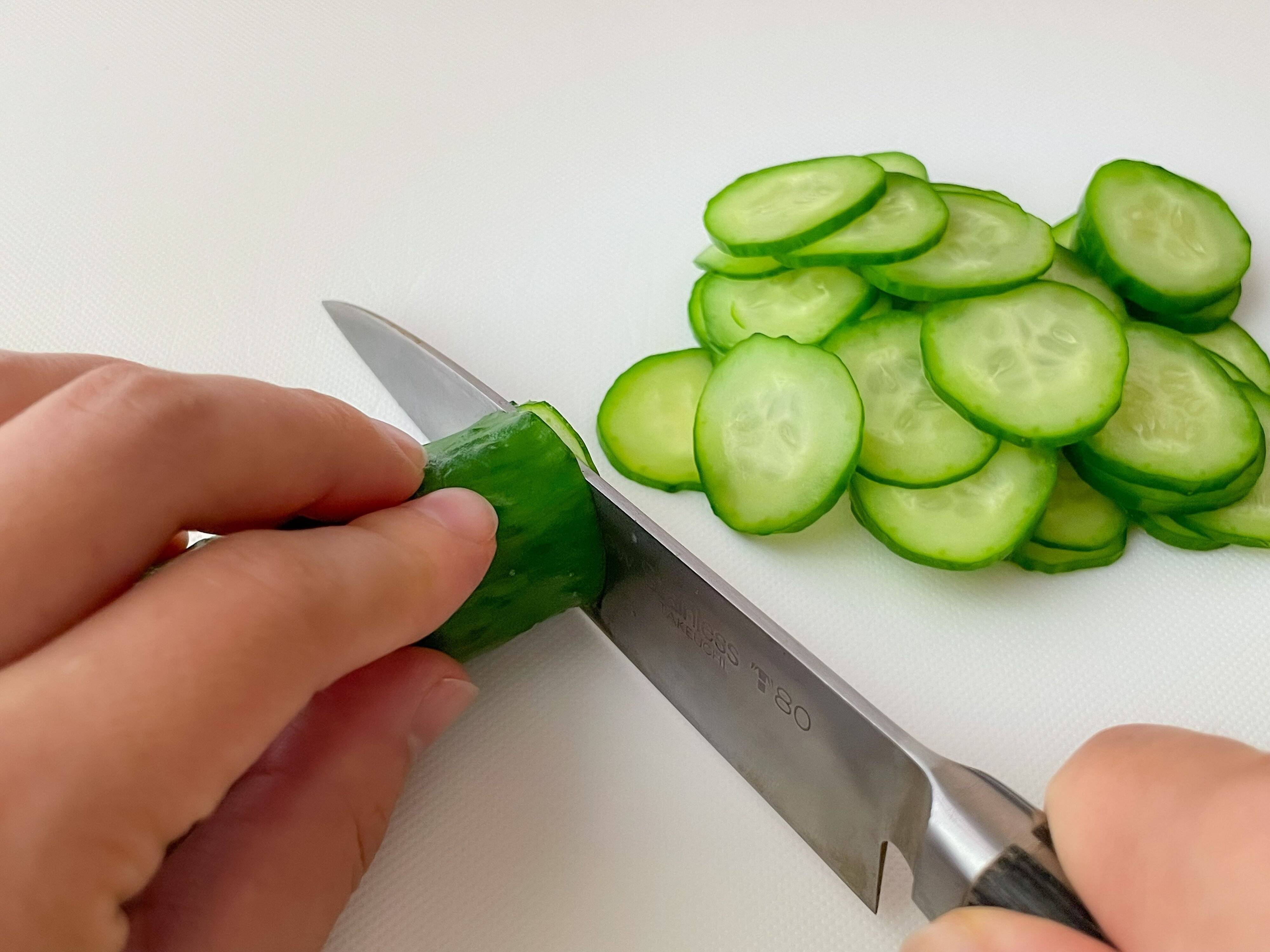 わずか30秒ほどの工程ですが、塩もみをするまえのひと手間できゅうりのおいしさがグンと引きだされ、料理の仕上がりがワンランクアップしますよ。