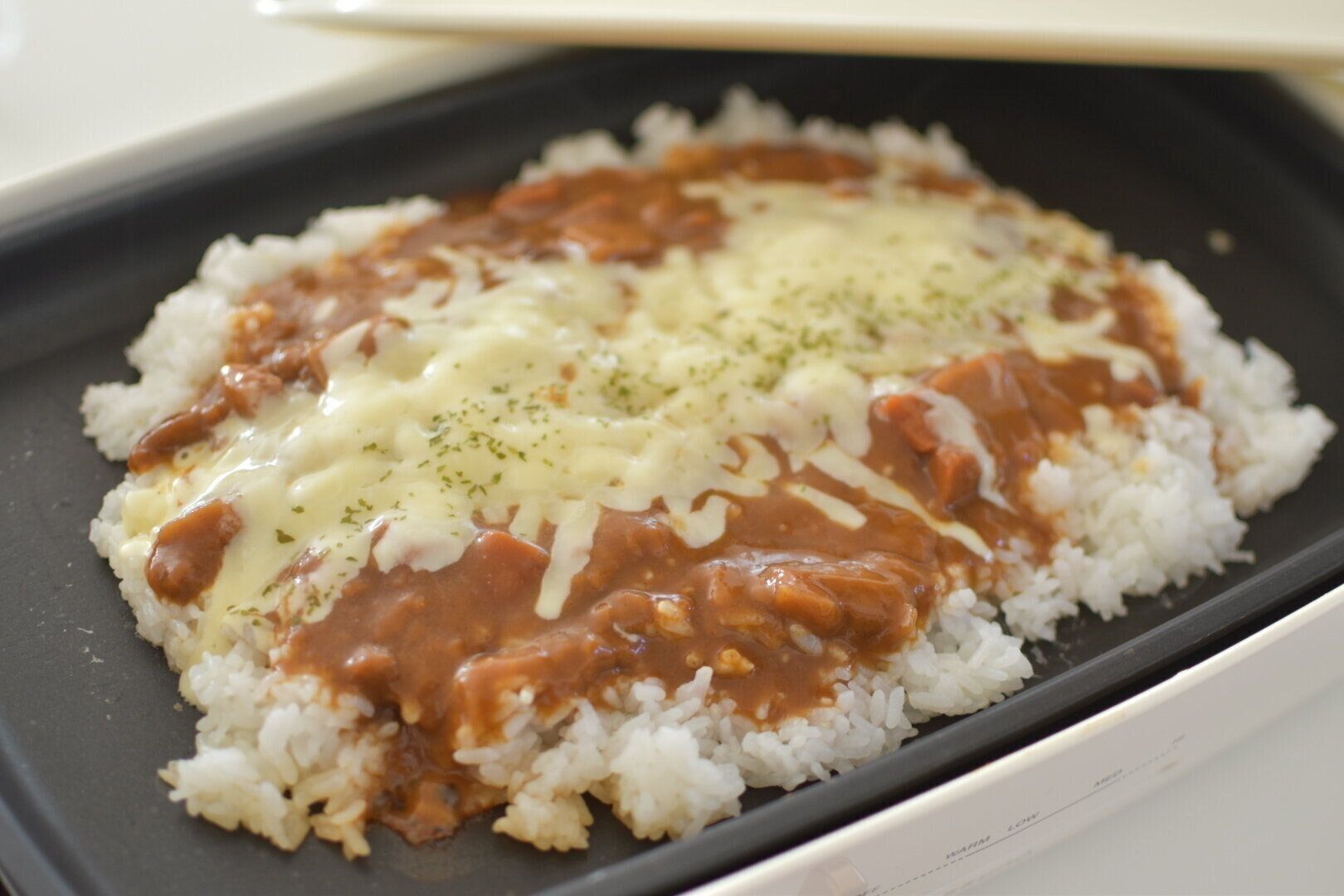 子どもから大人まで大好きな組みあわせですよね。包丁も使わずにつくれます。通常のカレードリアであればオーブンやトースターを使用しますが、ホットプレートなのでその手間も省略。いっしょに目玉焼きやウインナーを焼いたり、おこげも楽しめます。