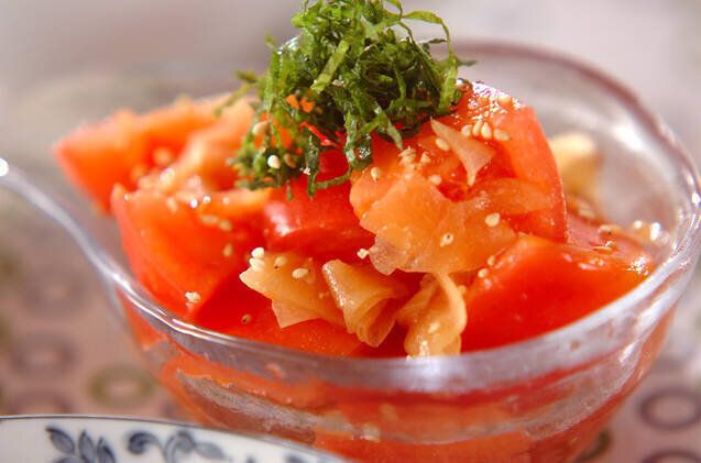 トマトは抗酸化作用が非常に高いリコピンという成分を含み、老化防止や動脈硬化、生活習慣病予防などに効果的といわれている食材です。ガリとトマトを合わせたこちらのレシピは、美容やダイエットなどを気にしているかたに特におすすめのレシピとなっています。