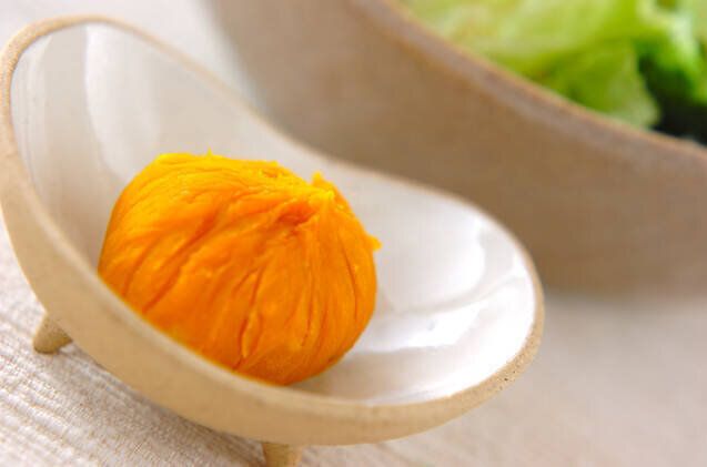 かぼちゃで白玉団子を包み込んだ、手軽に作れる和菓子です。かぼちゃの優しい甘みによって、砂糖を少なくてもおいしく食べられます。