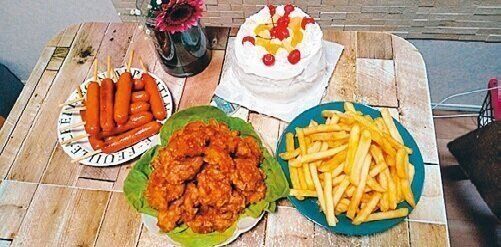 財布のひもがゆるみがちな、お誕生日ディナー。「外食すると8000円くらいかかるけど、子どもの大好物を用意してケーキも作れば2000円くらいですみ、食費は予算内におさまります!」。