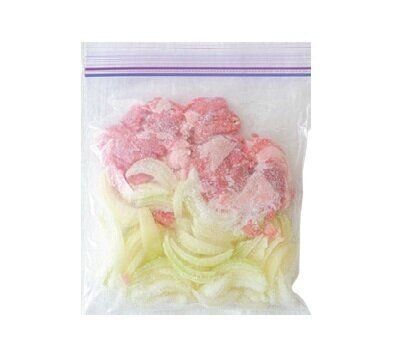 肉や野菜は、夕食作りのついでに切り分けて冷凍保存。「よく使う大きさに切り分け、具材をセットにしておけば、すぐに使えて便利。さらに立てて収納することで、在庫がひと目でわかるので、キッチリ使い切れます」。