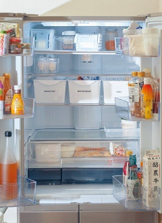 豆腐など消費期限の短い物をBOXにまとめ、手が届きやすい中段に。「献立を決める際にまずここをチェックして早めに使い切ります」。