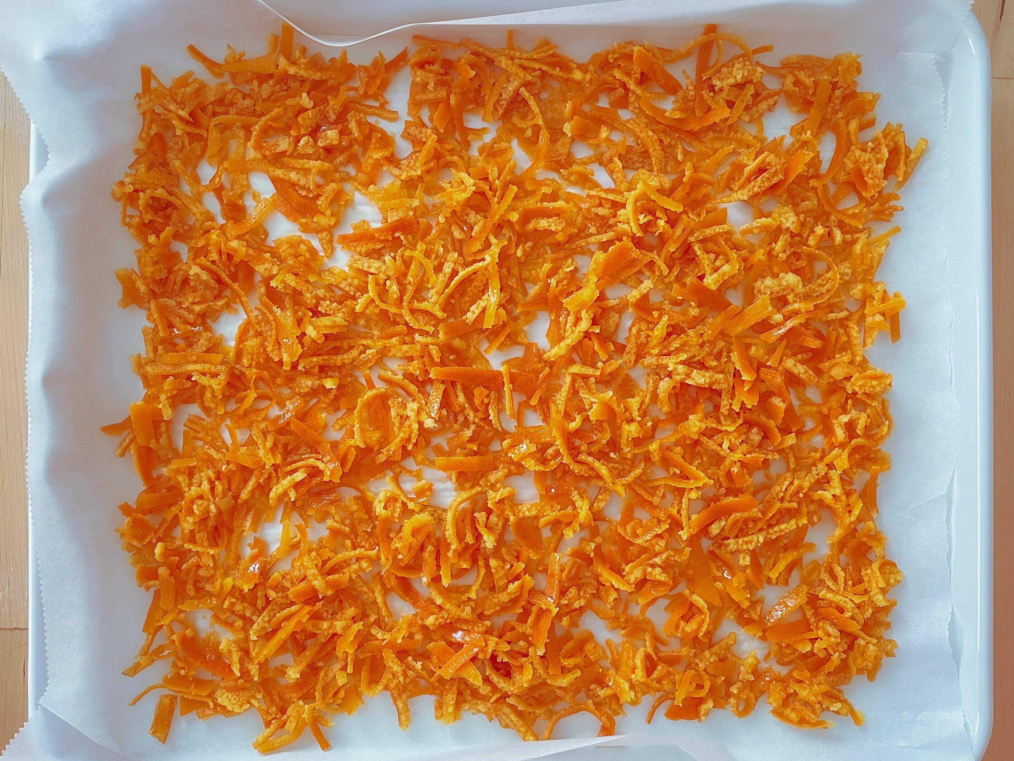(6) クッキングシートの上に広げて冷ます。