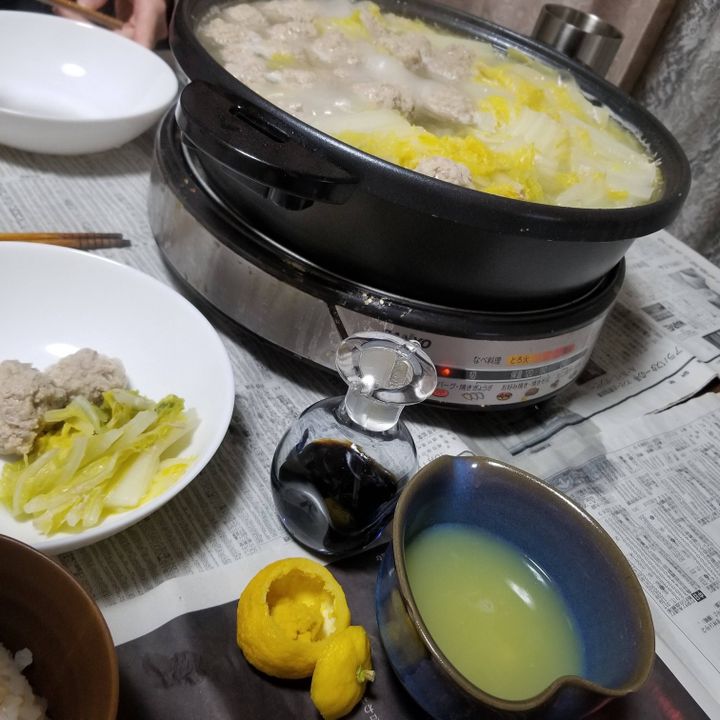 母が昔から作ってくれていた肉団子の水炊き鍋です。子供の頃は白菜の株元の部分が苦手で、妹と競って葉先の部分を食べていた記憶があります。