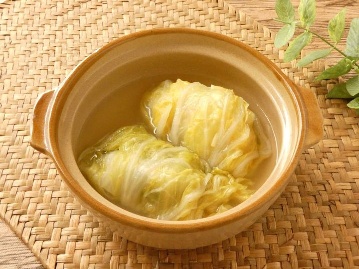 ひき肉200gを使った肉だねを、白菜8枚で包んで煮込むロール白菜。