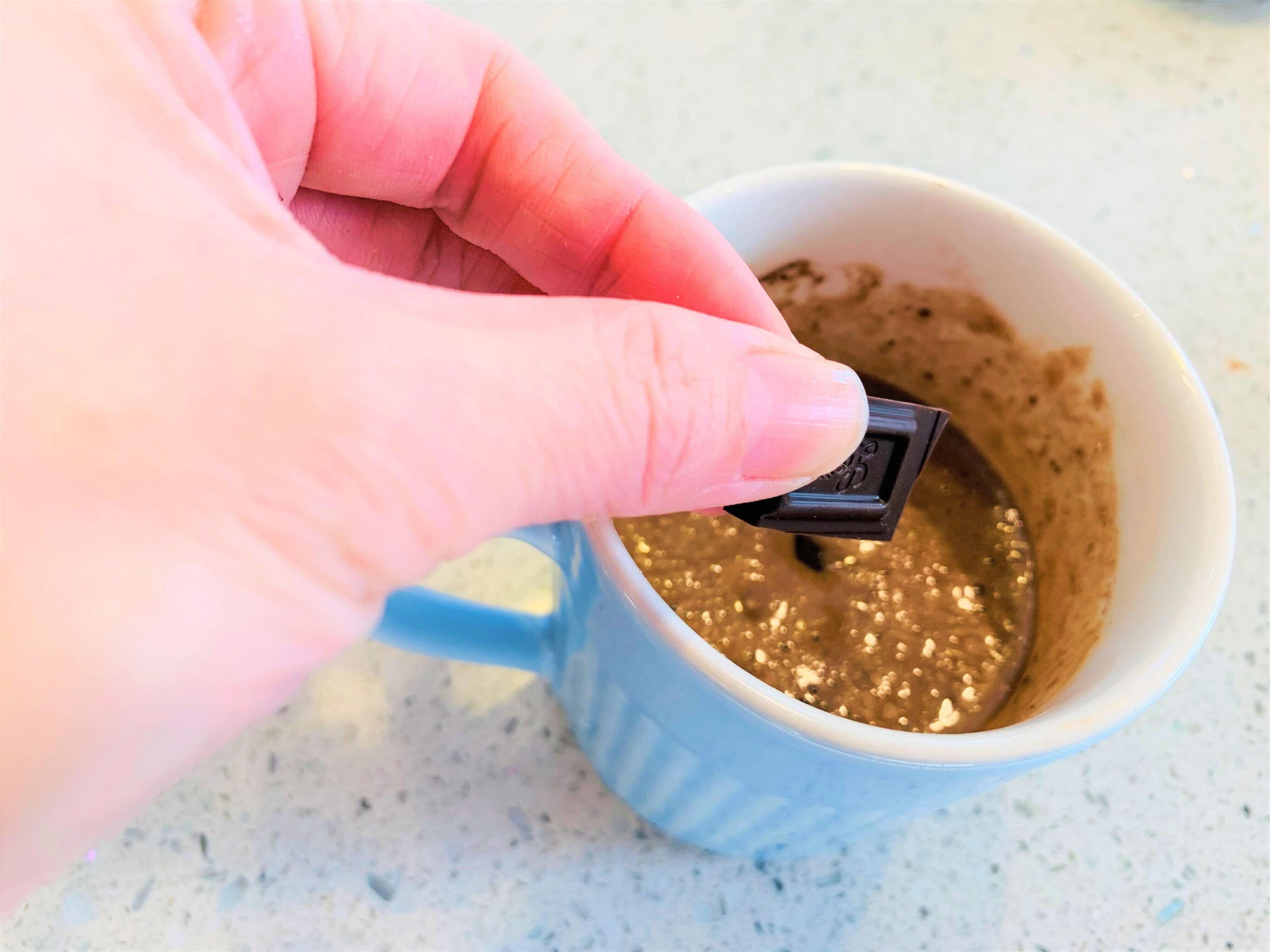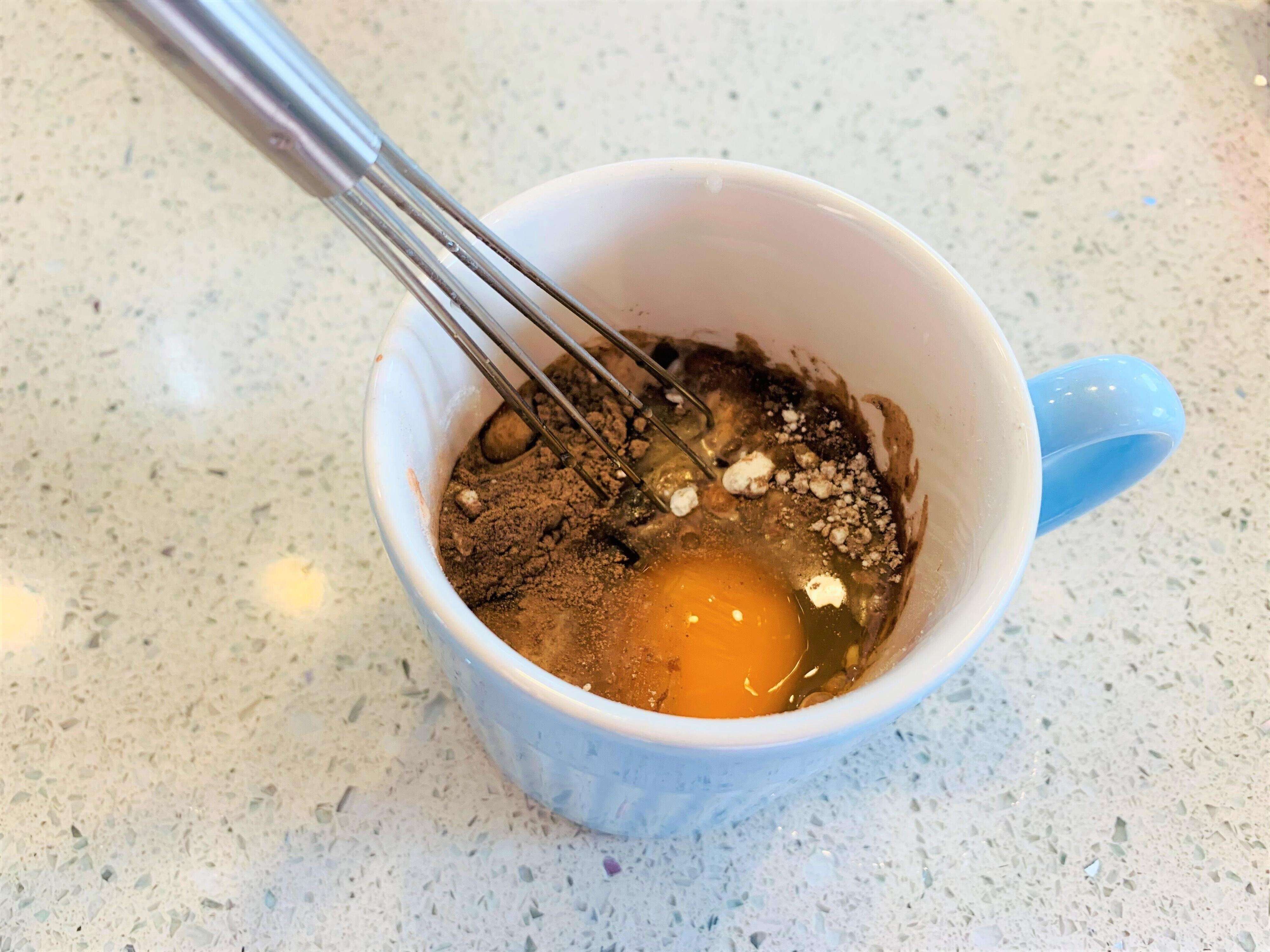 1.板チョコ以外の材料をすべてマグカップに入れて、よーく混ぜます。